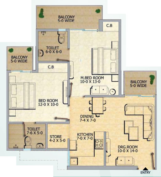 Flat Sizes - ( 1055 - 1320 ) sqft