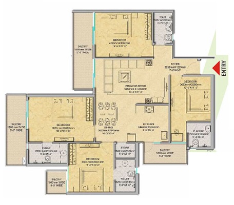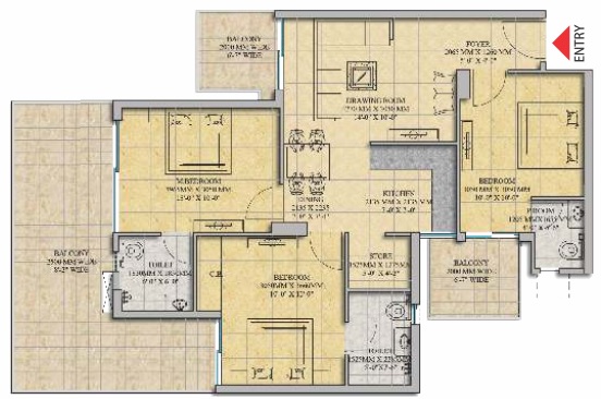 3 BHK + Store + 3 Washrooms