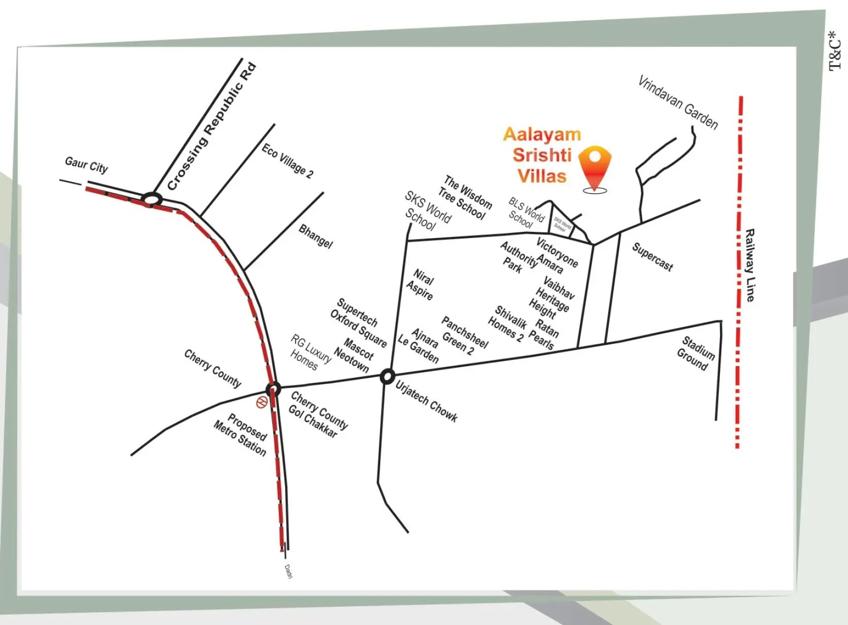 , Location Maps, Master Plan of Aalayam Srishti Villas , Sector 16B, Noida Extension.