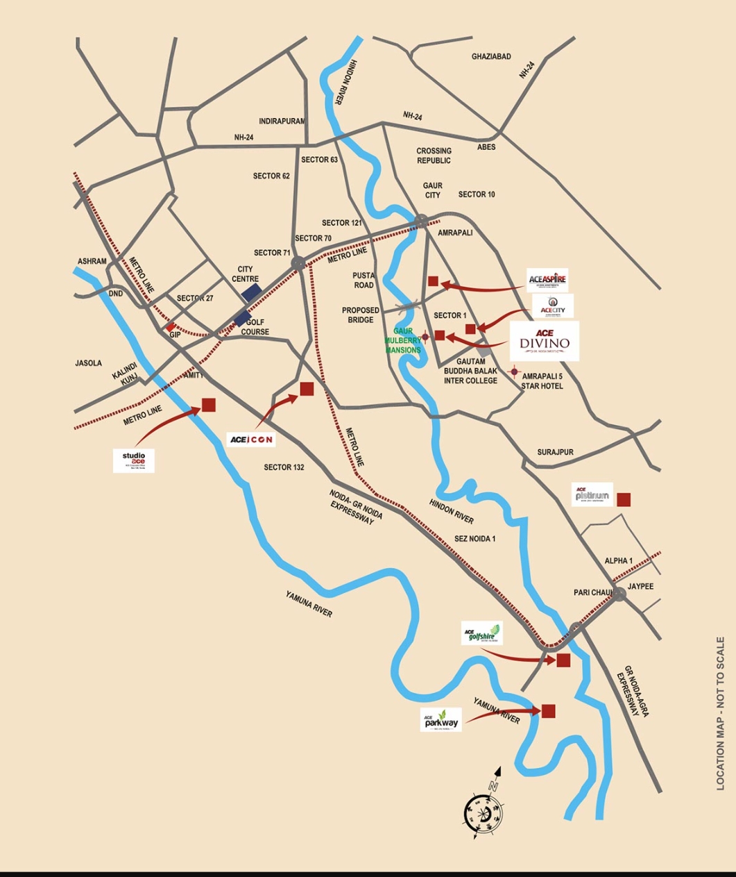, Location Maps, Master Plan of Ace Divino , Sector 1, Noida Extension, Bisrakh Jalalpur.