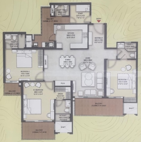 3 BHK + Servernt + 4 Washrooms