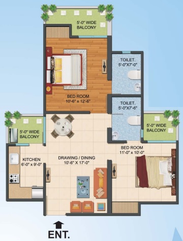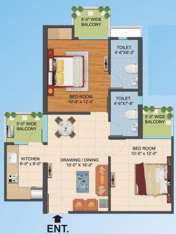 2 BHK + 2 Washrooms