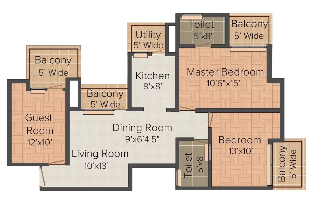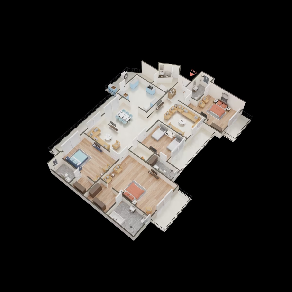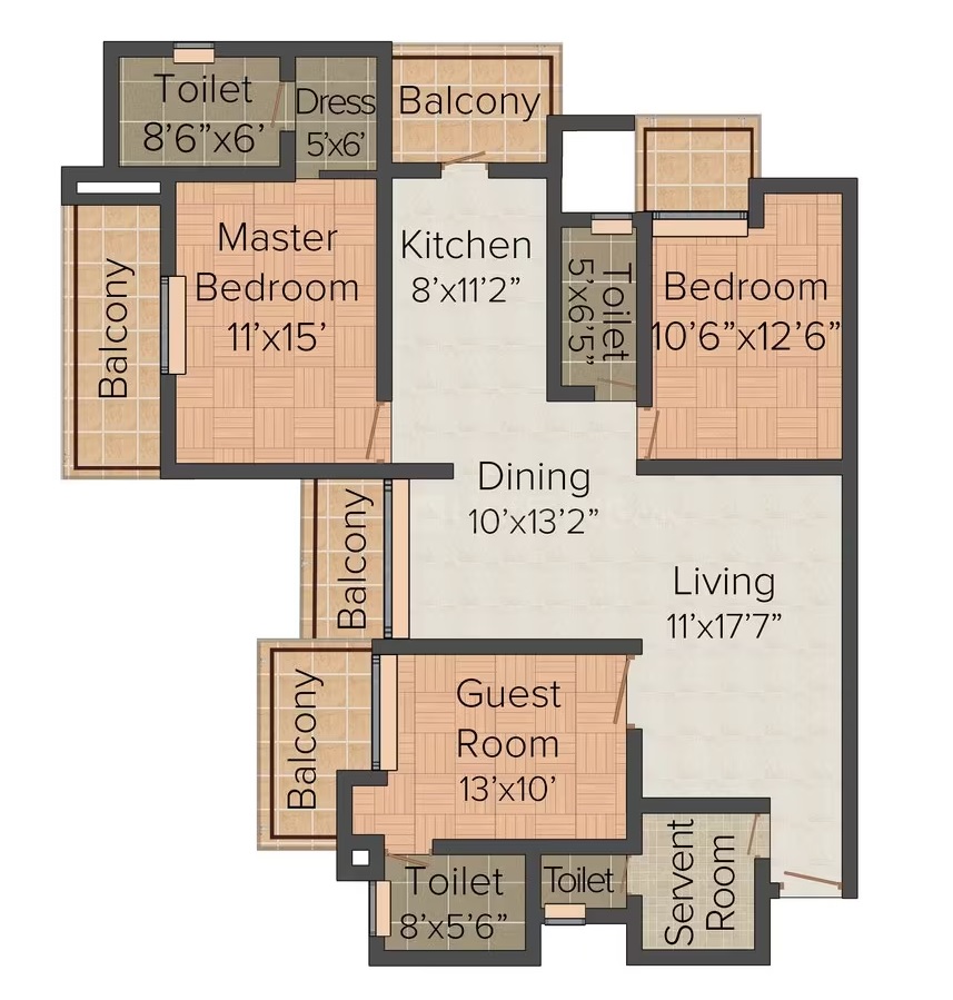Flat Sizes - ( 1140 - 3075 ) sqft