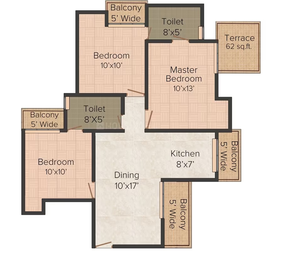 Flat Sizes - ( 885 - 1185 ) sqft