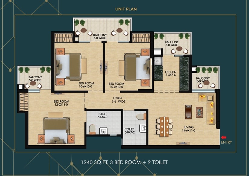Super Area | 1240 sqft