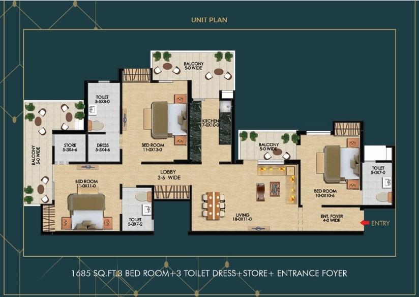 Super Area | 1685 sqft