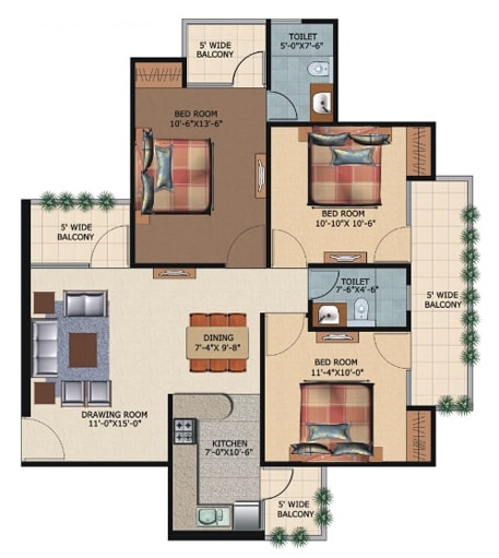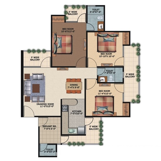 3 BHK + Servernt + 3 Washrooms