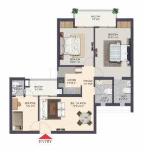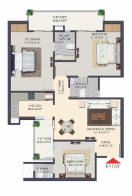 2 BHK + Study + 3 Washrooms