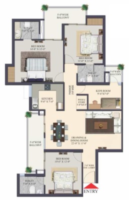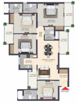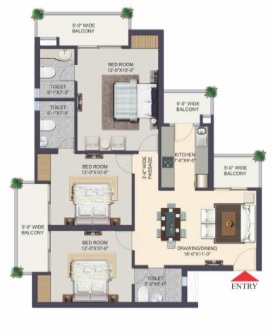 3 BHK + 3 Washrooms