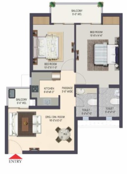 2 BHK + 2 Washrooms
