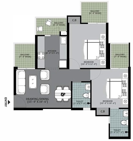 2 BHK + 2 Washrooms