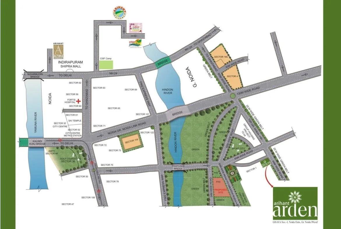 , Location Maps, Master Plan of Arihant Arden , Sector 1, Noida Extension, Bisrakh Jalalpur.