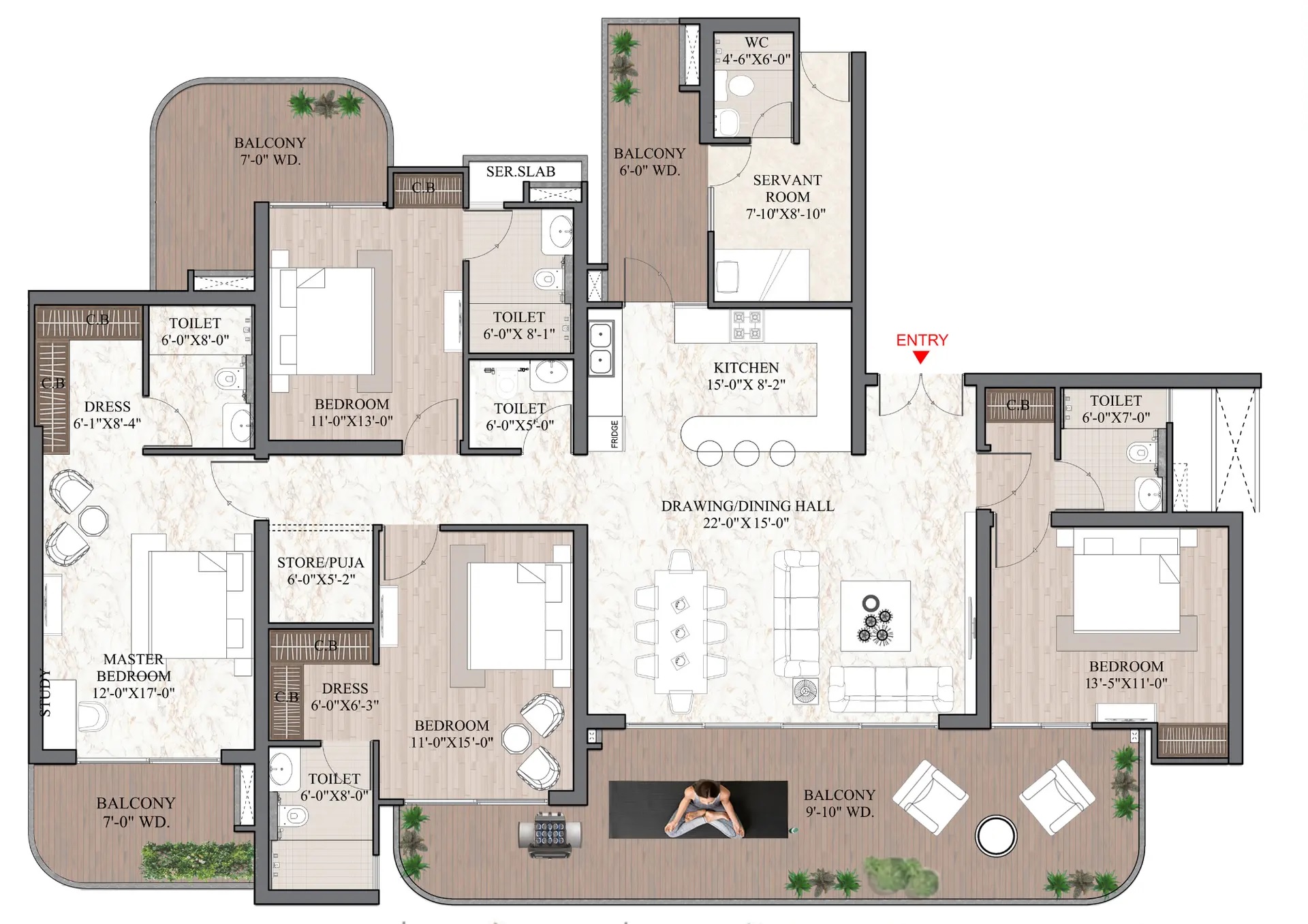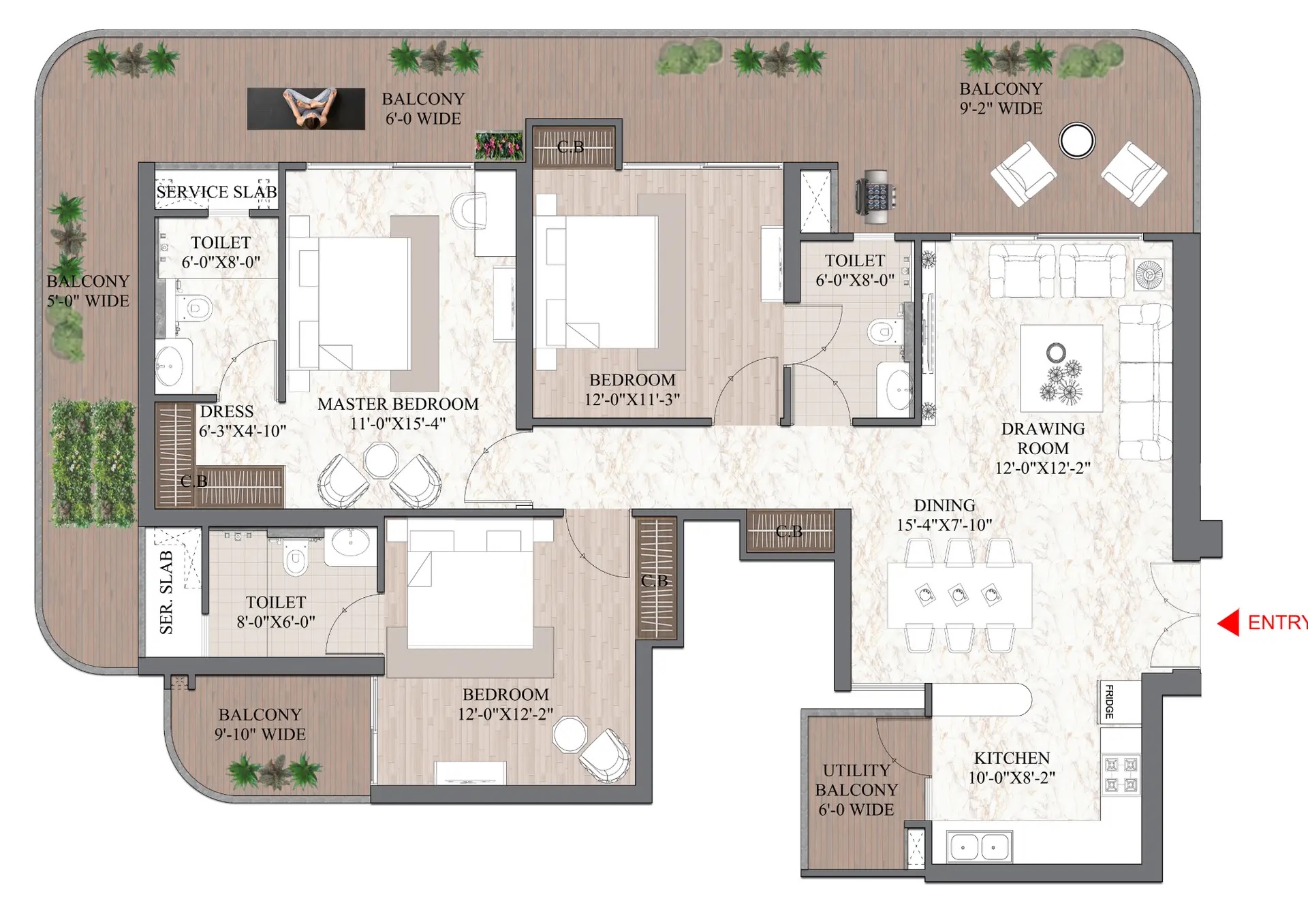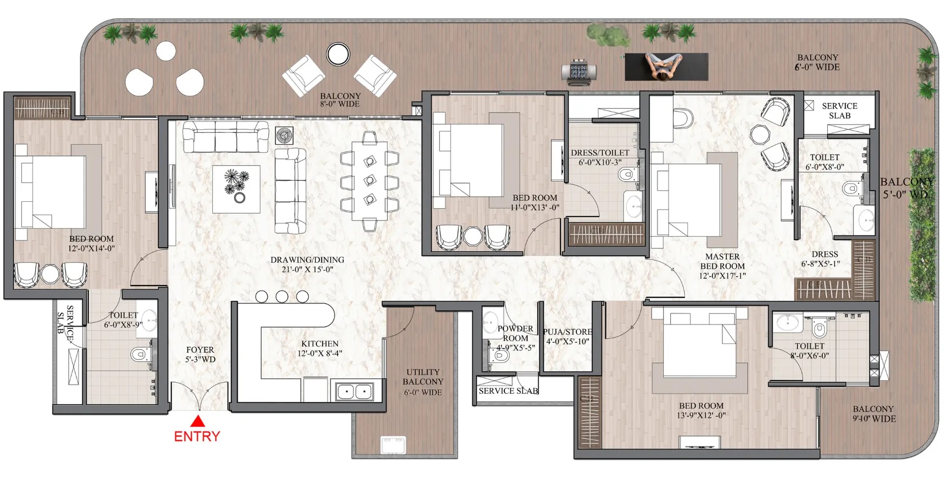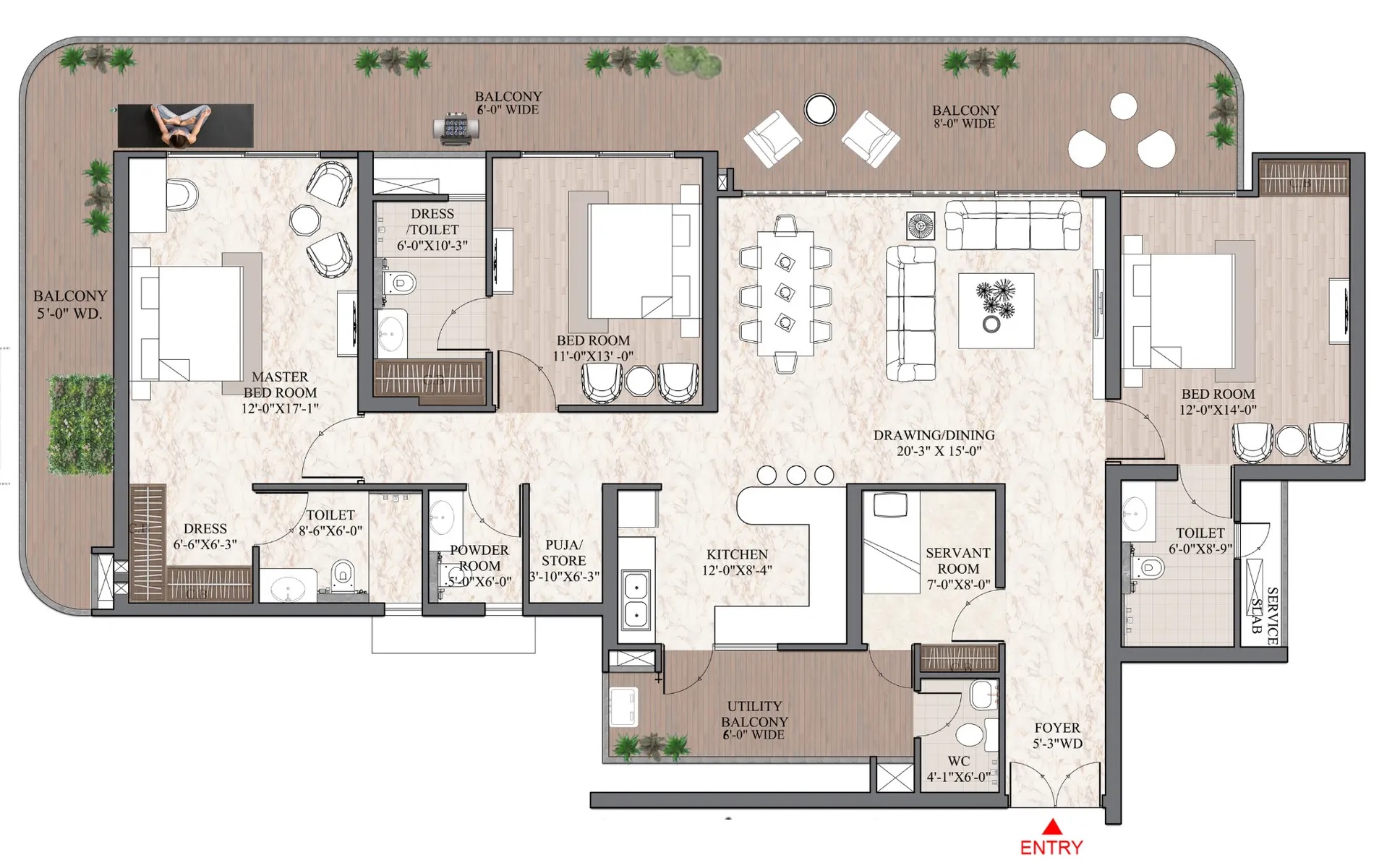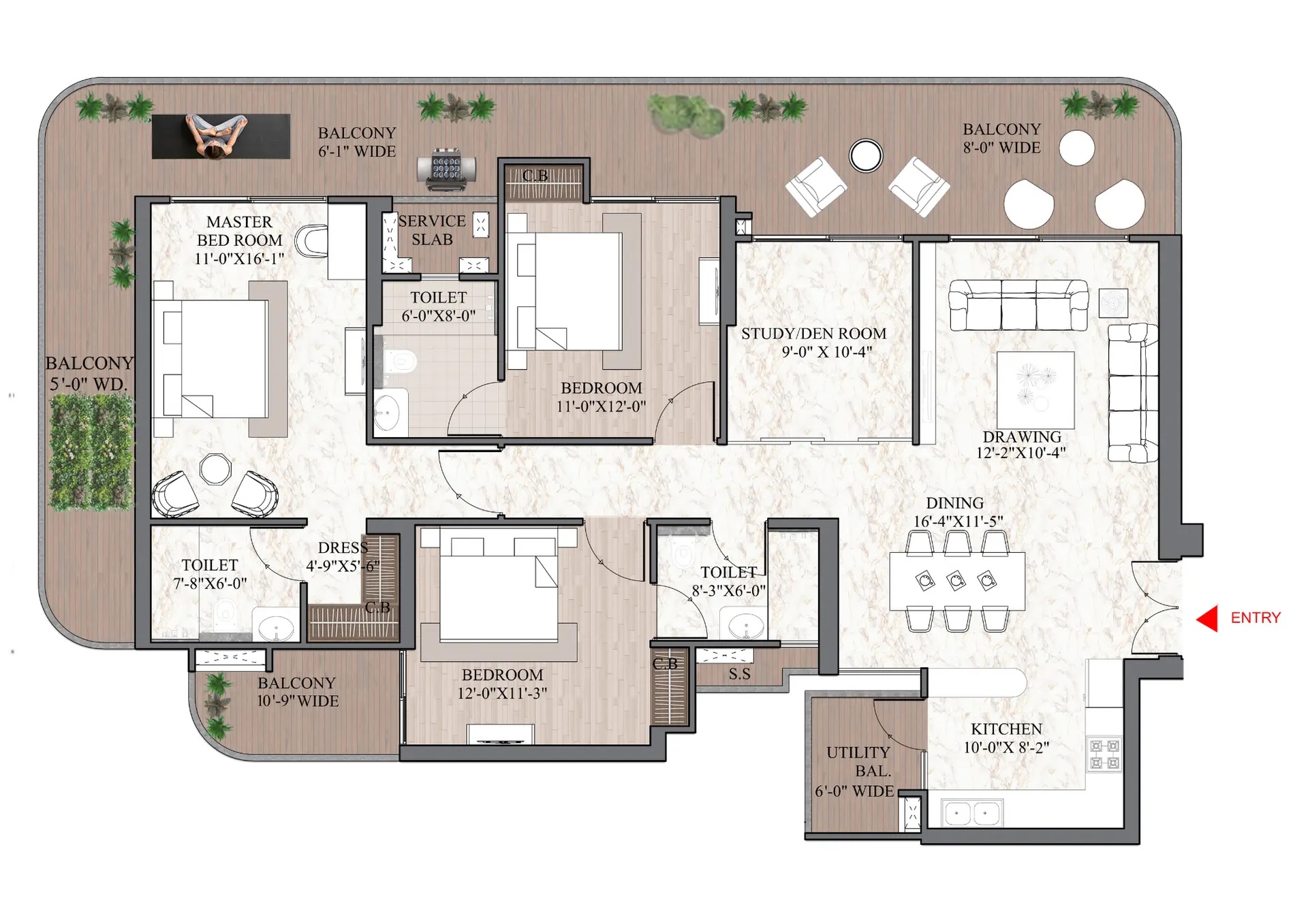 Flat Sizes - ( 2095 - 3595 ) sqft