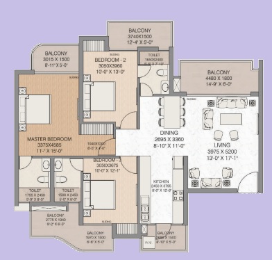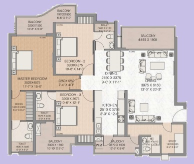 Flat Sizes - ( 1932 - 2625 ) sqft