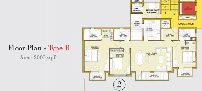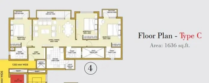 Flat Sizes - ( 1484 - 1900 ) sqft