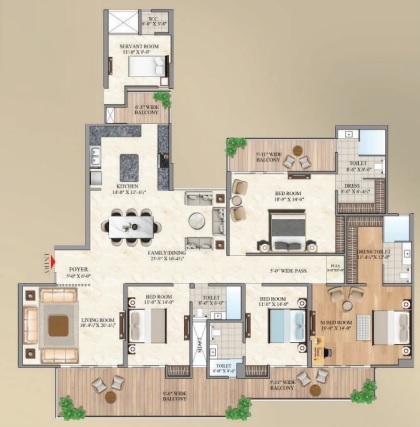 4 BHK + Servent + 5 Washrooms