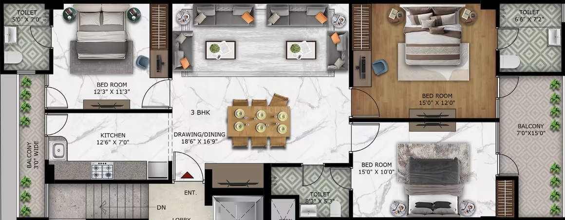 Flat Sizes - ( 1720 - 2775 ) sqft
