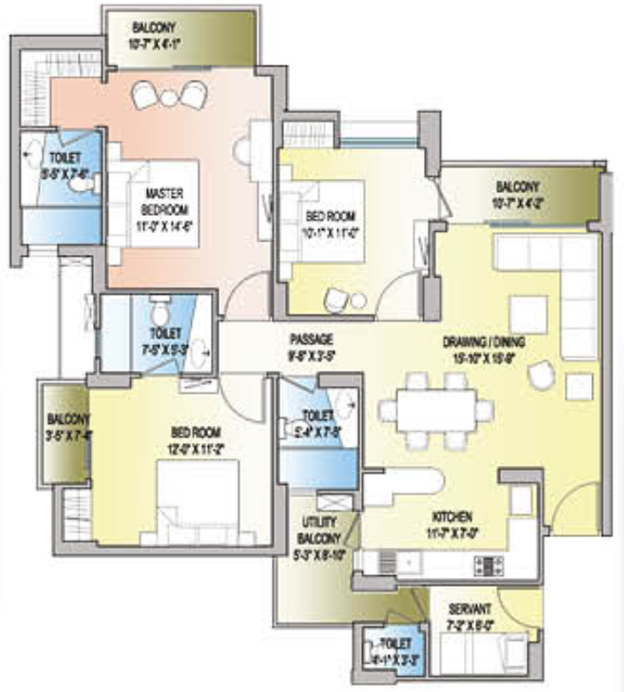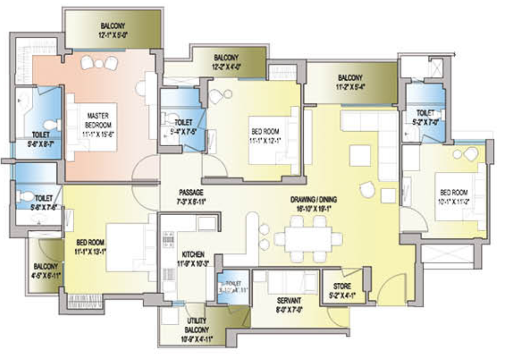 4 BHK + Servent + 4 Washrooms