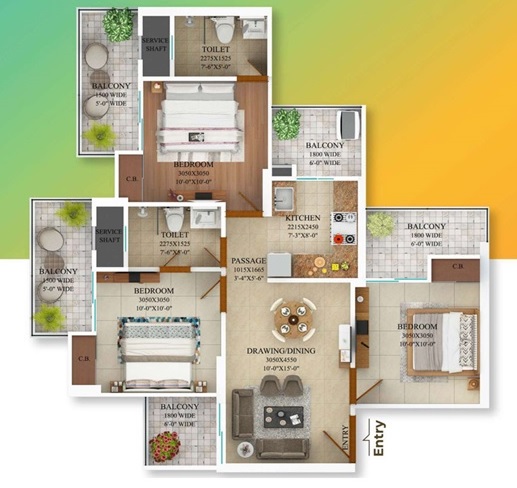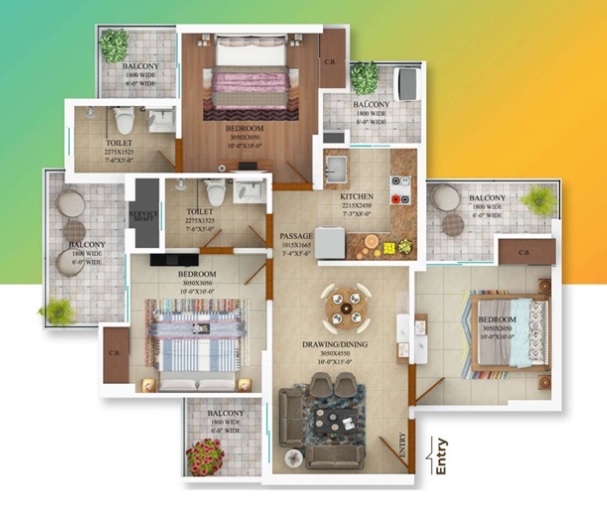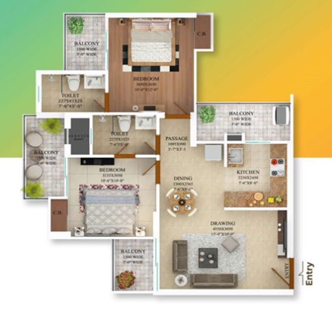 Flat Sizes - ( 1090 - 1275 ) sqft