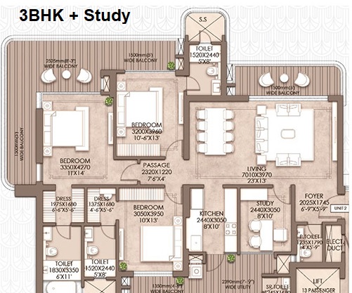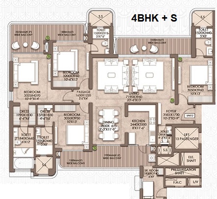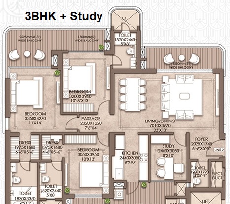 Flat Sizes - ( 2245 - 2690 ) sqft