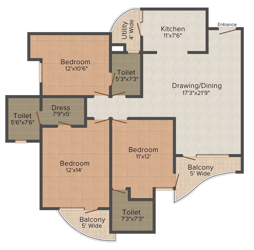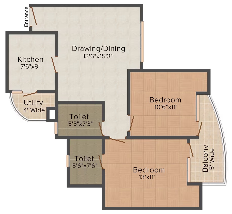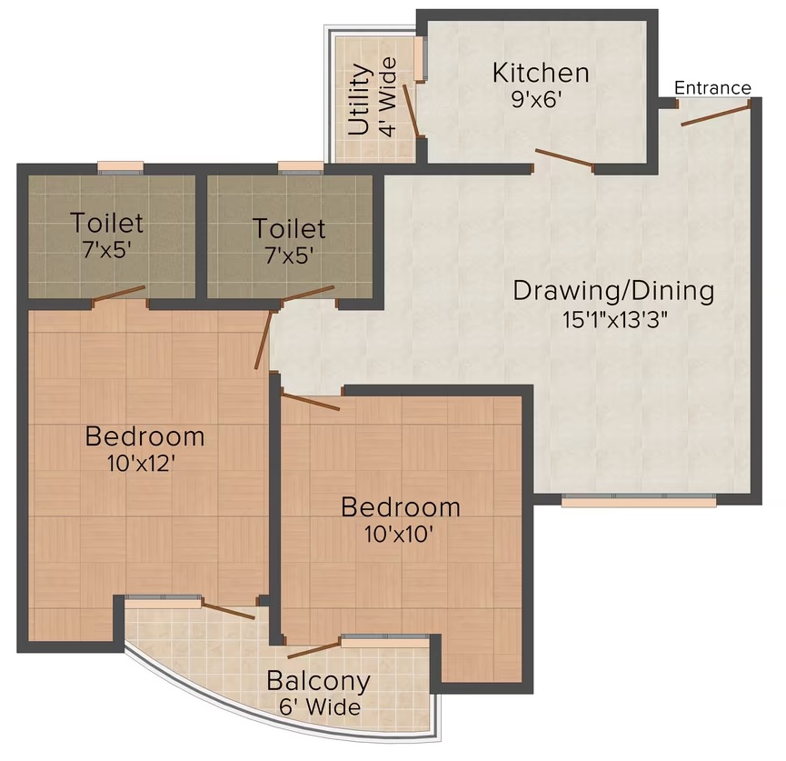 Flat Sizes - ( 875 - 1495 ) sqft