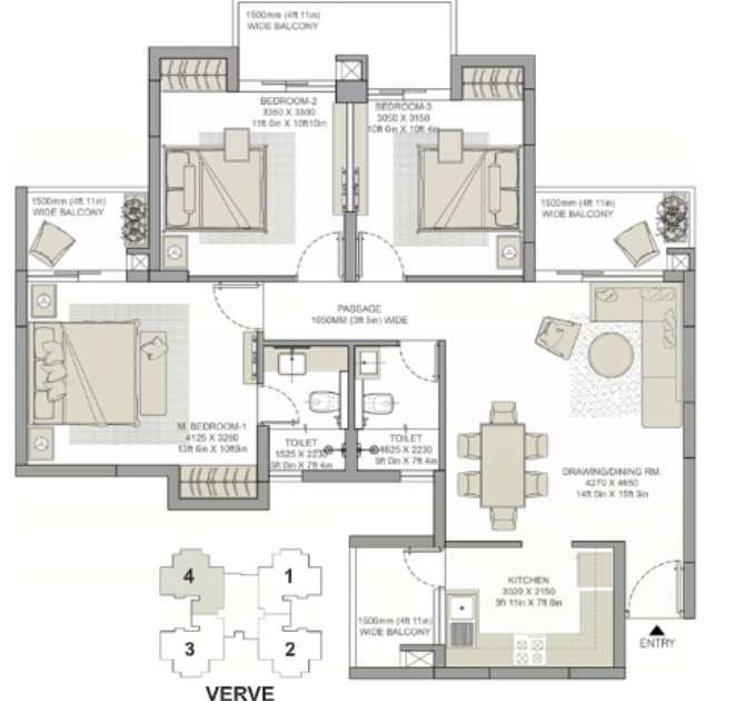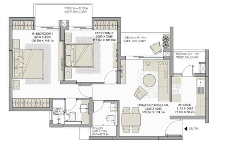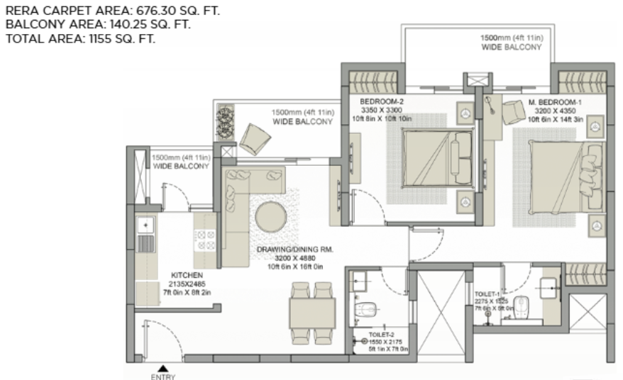 Flat Sizes - ( 1045 - 1660 ) sqft