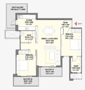 Flat Sizes - ( 1425 - 2880 ) sqft