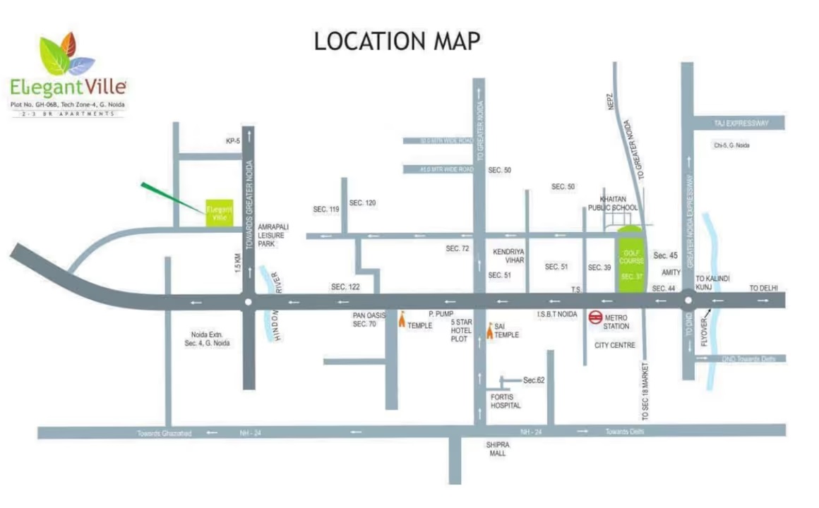 , Location Maps, Master Plan of Elegant Ville , TechZone 4, Noida Extension.