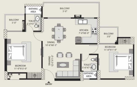Flat Sizes - ( 1110 - 2275 ) sqft