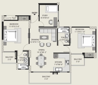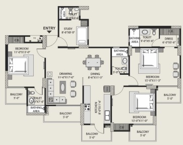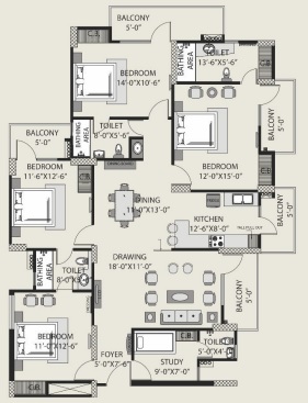 4 BHK + Study + 4 Washrooms
