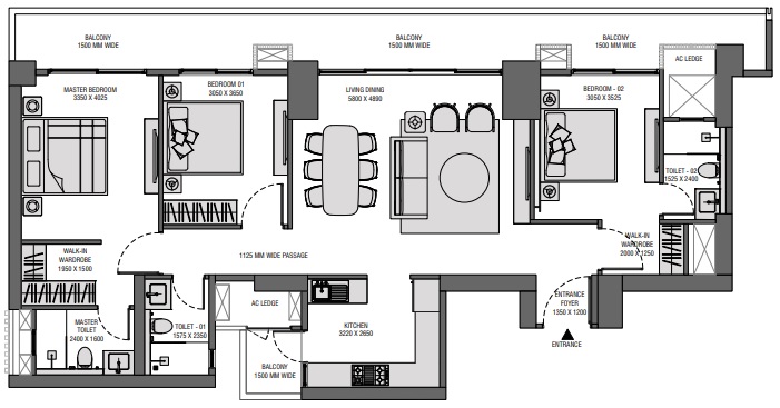 Flat Sizes - ( 2100 - 3200 ) sqft