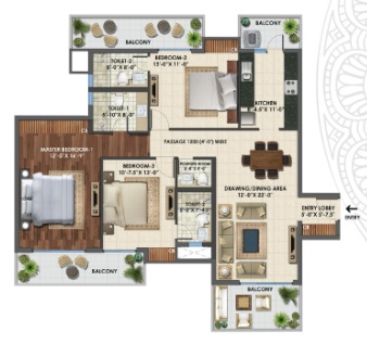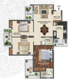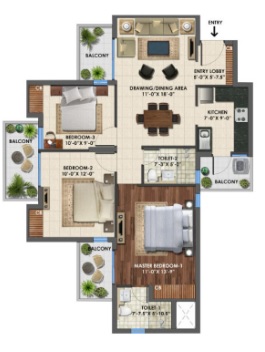 3 BHK + 3 Washrooms