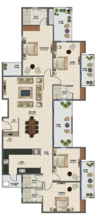 4 BHK + Study + 4 Washrooms