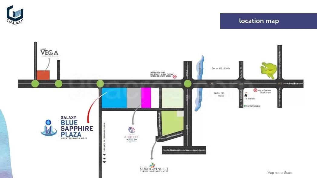 , Location Maps, Master Plan of Galaxy Blue Sapphire Plaza , Sector 4, Noida Extension.