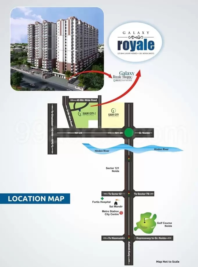 , Location Maps, Master Plan of Galaxy Royale , Gaur City 2, Noida Extension.