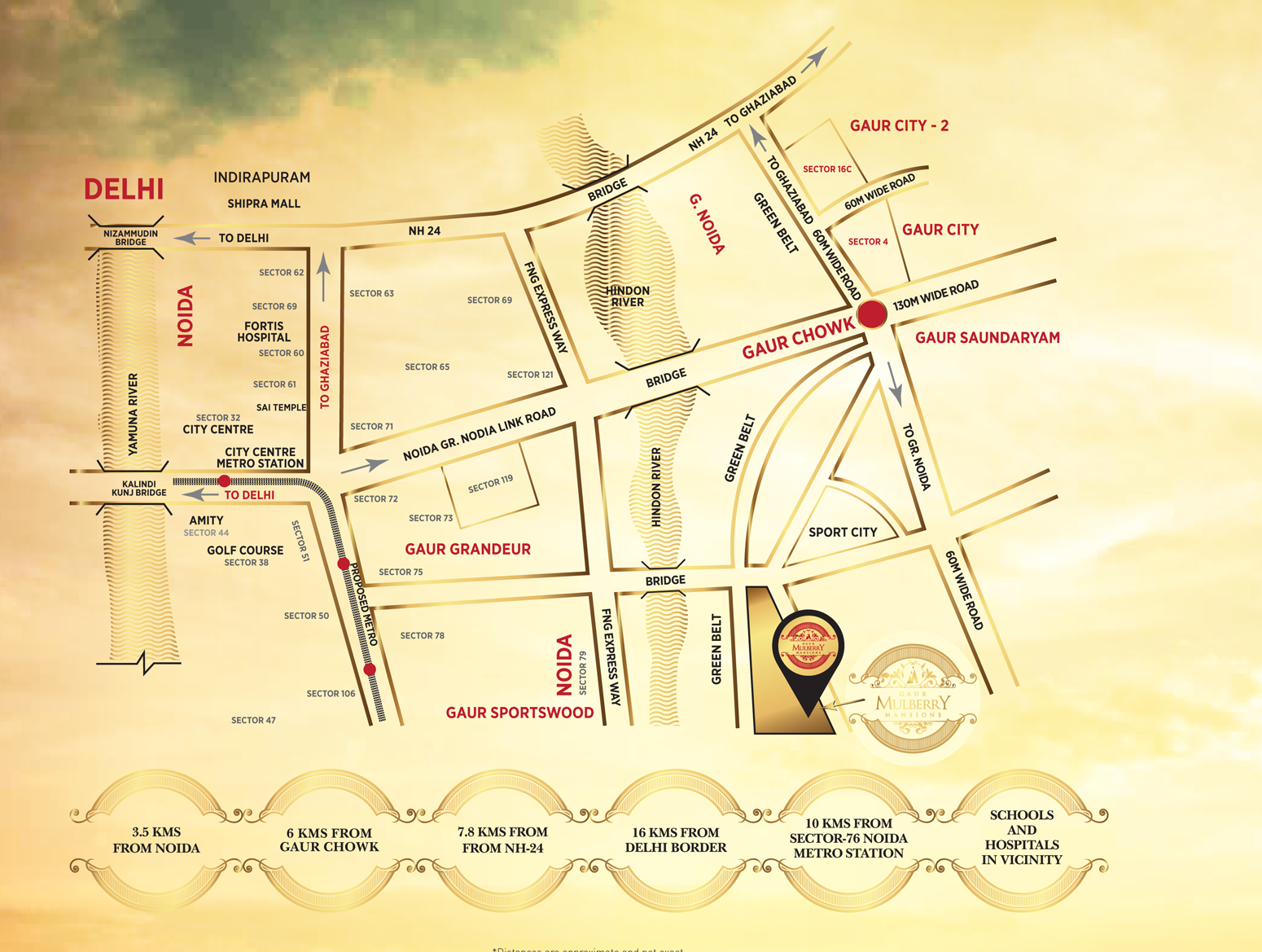 , Location Maps, Master Plan of Gaur Mulberry Mansions , Sector 1, Noida Extension, Bisrakh Jalalpur.