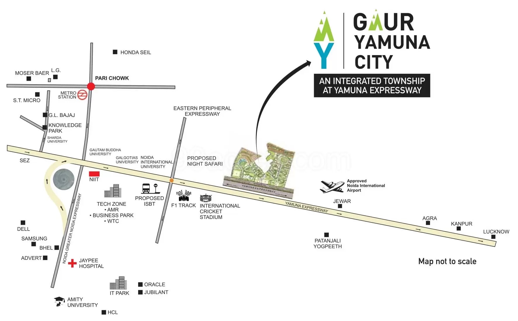 , Location Maps, Master Plan of Gaur Yamuna City 6th Parkview Victorian Villas , Sector 22D, Yamuna Expressway.