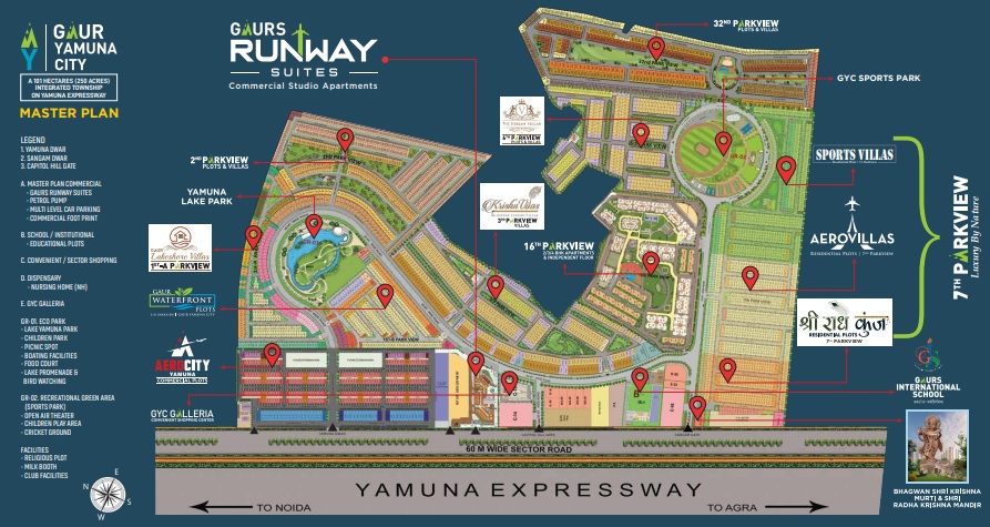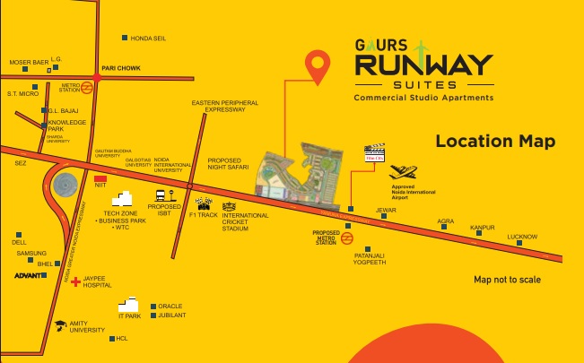 , Location Maps, Master Plan of Gaurs Runway Suites , Sector 19, Yamuna Expressway.