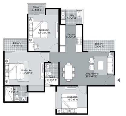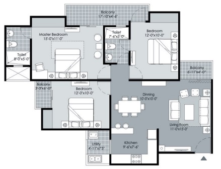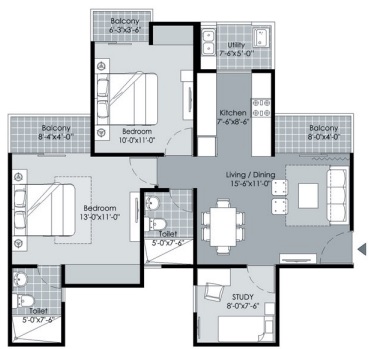 Flat Sizes - ( 1080 - 1560 ) sqft