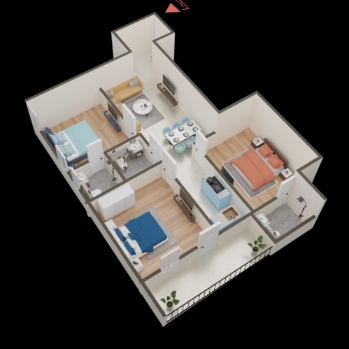 3 BHK + 2 Washrooms