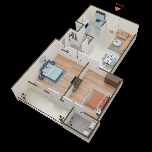 2 BHK + 2 Washrooms