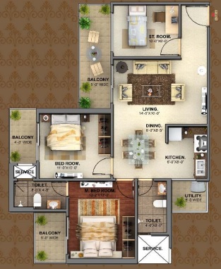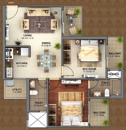 Flat Sizes - ( 685 - 1400 ) sqft