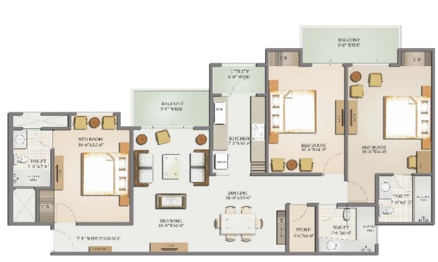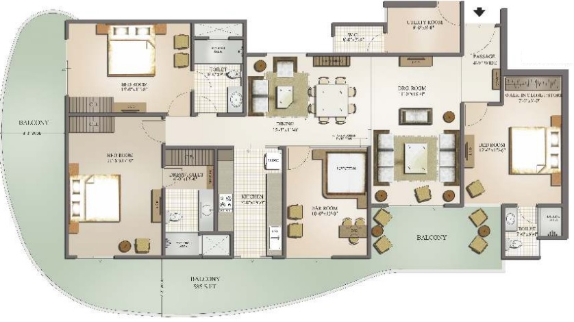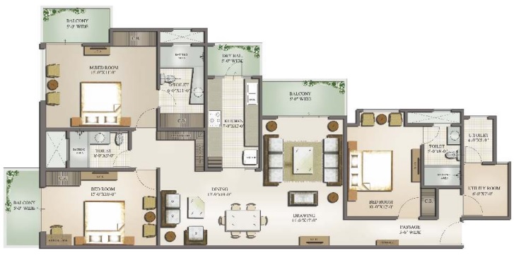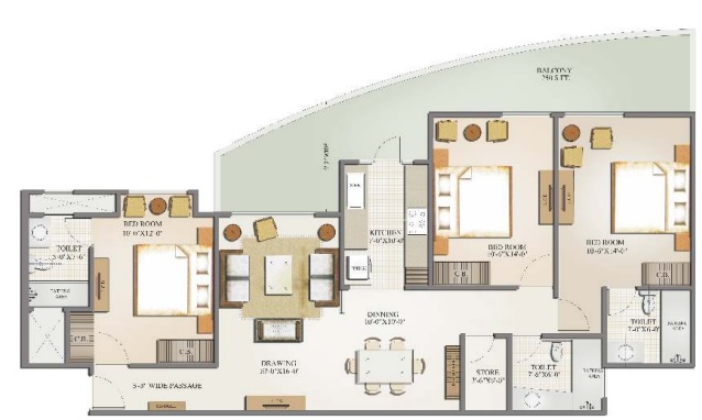 Flat Sizes - ( 1010 - 4000 ) sqft