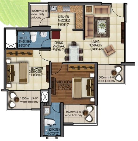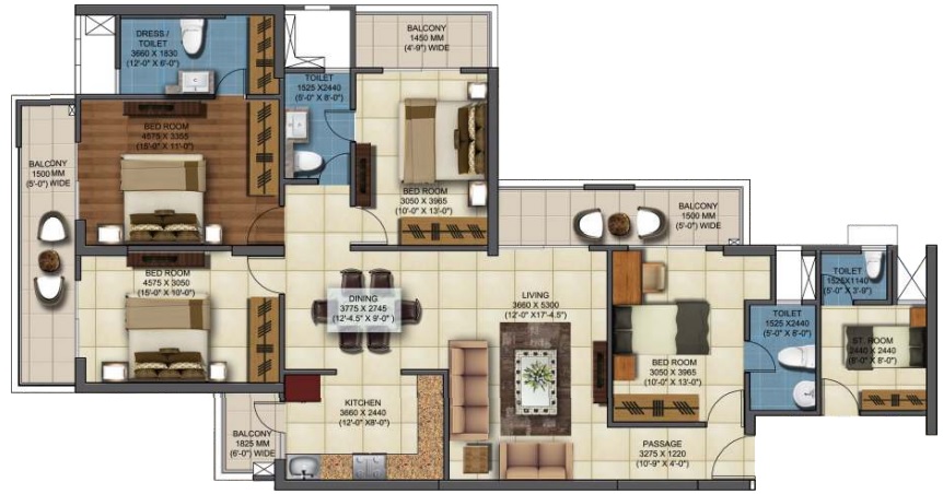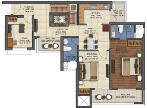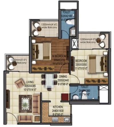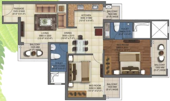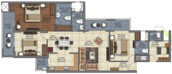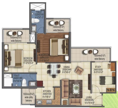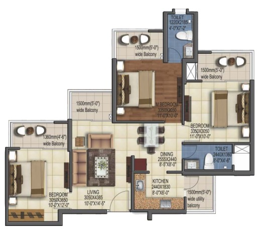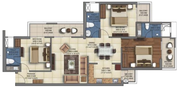 Flat Sizes - ( 1850 - 2190 ) sqft