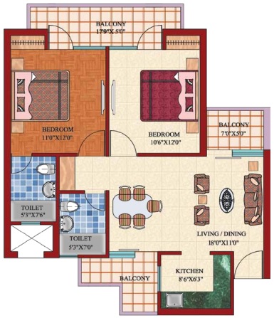 Flat Sizes - ( 650 - 1810 ) sqft