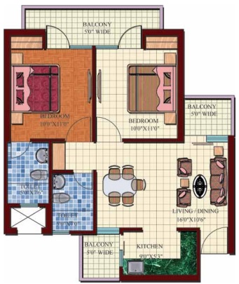 2 BHK + 2 Washrooms