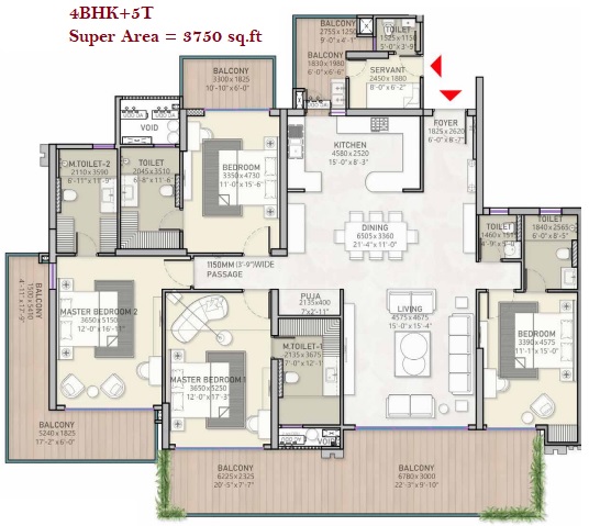 Flat Sizes - ( 1895 - 3750 ) sqft