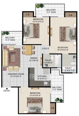 3 BHK + 2 Washrooms