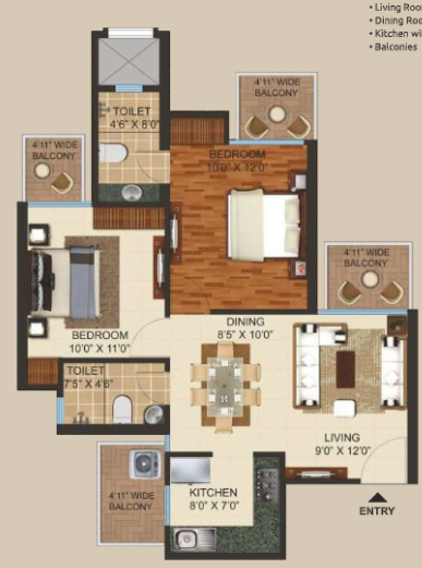 2 BHK + 2 Washrooms