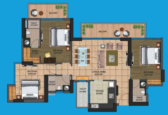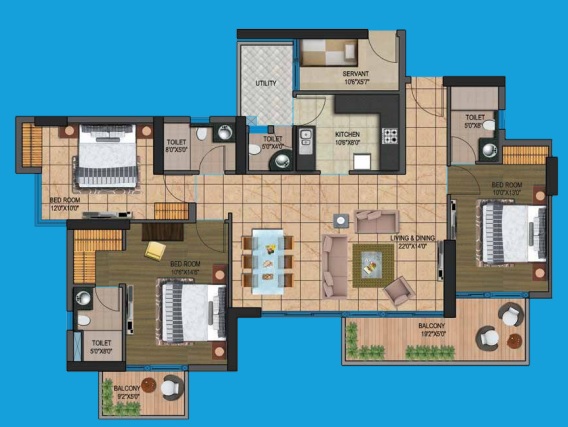 3 BHK + Servernt + 4 Washrooms